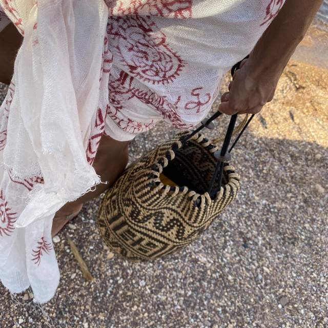 Recomendamos lavar a mano con agua fría y añadirle un puñado de sal para que los pigmentos se adhieran al tejido.