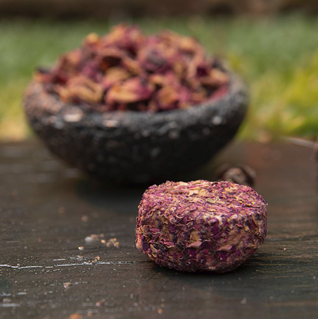 Hecho con flores y hierbas, carbón, aglutinantes naturales, sal.